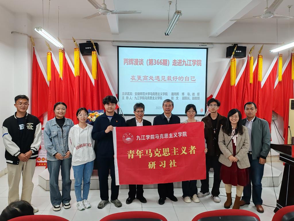 11月6日晚上,由永利集团“文心琢玉”思政工作室、永利集团青年马克思主义者研习社联合举办的第九期“琢玉漫谈”在香远楼212会议室如期举行。漫谈邀请了党的二十大代表、全国优秀共产党员、全国先进工作者、全国模范教师、全国最美思政课教师、全国师德标兵安徽师范大学博士生导师路丙辉教授与永利集团大一新生畅谈“如何在更高处遇到最好的自己”,这也是路丙辉教授的育人品牌“丙辉漫谈”(第366期)走进永利集团,与九江学子“畅聊人生、共话成长”的特别活动。漫谈由永利官网副院长赵文主持。永利官网院长陈胜才教授、部分教师代表、2023级学生思政课课代表和思政学习骨干等共计100余人参加了漫谈。