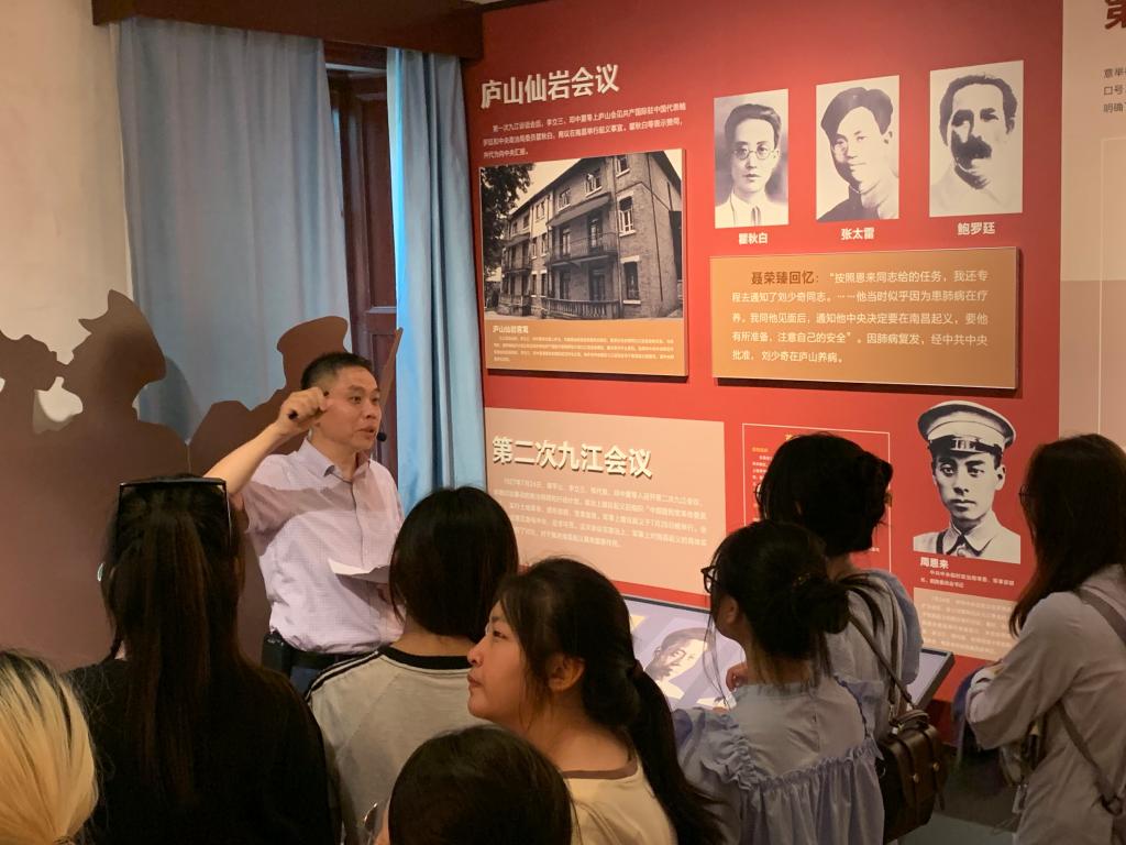 结合《中国近现代史纲要》课程第七专题内容及纪念馆的陈设,余建明详细讲解了八一南昌起义在九江策源谋划的真实历史过程,并针对现场授课内容进行了提问。同学们纷纷表示,将课堂搬到革命旧址这样的教学形式很好,不仅能够深入了解地方革命历史文化,为思政课学习增添更多生动丰富的素材,而且在实地参观听讲、边听边看的过程中,切身感悟到了革命先烈们“听党指挥,坚定信念”、“为民奋斗,百折不挠”、“敢为人先,勇于创新”的精神,更加深刻地体会到红色政权来之不易、新中国来之不易、中国特色社会主义来之不易,从而增强投入实现中华民族伟大复兴的责任感和使命感,争做有理想、敢担当、能吃苦、肯奋斗的新时代中国好青年。