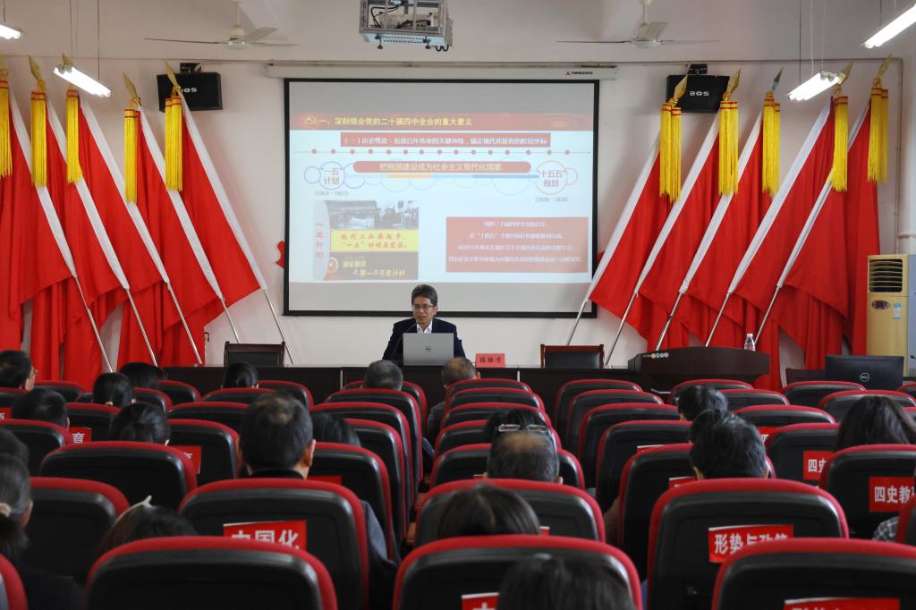 为深入学习贯彻党的二十届四中全会精神,11月12日下午,永利官网党委在香楼212会议室举办了学习贯彻党的二十届四中全会精神专题学习辅导报告会。学院全体教师参加学习,会议由党委副书记李雪主持。