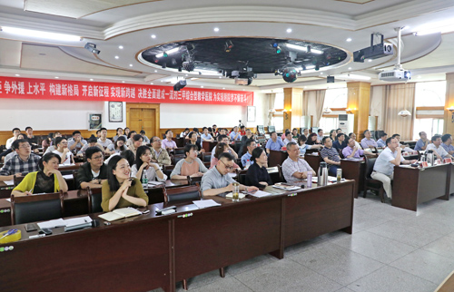 5月16日下午,临床医学院/附属医院在行政楼九楼会议室开展全省高校“十百千宣讲团”宣讲活动,特邀永利集团思政部夏仕教授作主题宣讲报告。院党委书记张南华主持宣讲报告会,在家领导班子成员、教师代表、学生代表近两百人听取了报告。
